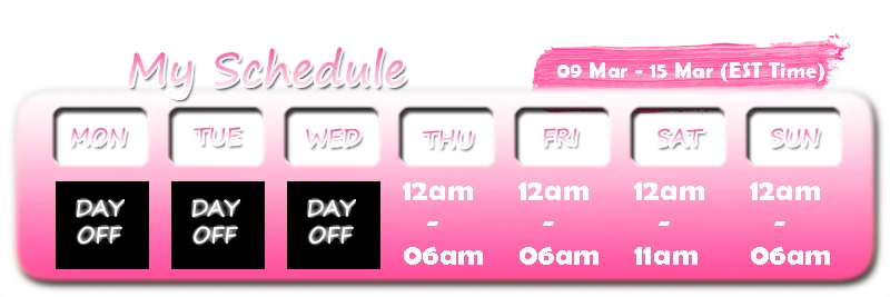 Baile Erótico, Show con Aceite, Azotes, Fetichismo de Pies, Twerking, Toples, Estriptis, Jerk-off Instruction, Paja, Masturbación, Orgasmo, Mamada, Squirting, Corrida, Anal, Ahegao, Juguetes Anales, Creampie, A Cuatro, Dedos, Juguetes Sexuales, Cock Rating, Garganta Profunda, Dildo o Vibrador